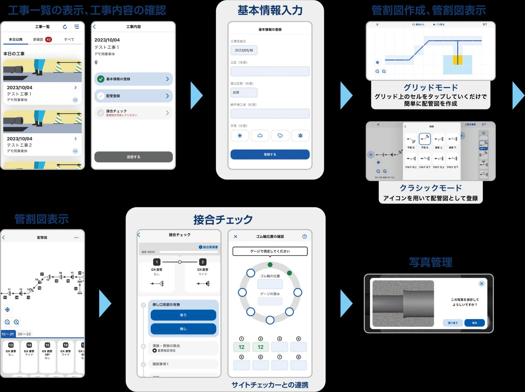 工事写真の撮影から整理、竣工資料の作成までをデジタル化。写真の自動分類機能により、書類作成時間が半減。